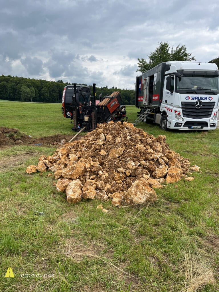 Mit unserer Horizontalbohrtechnik verlegen wir Leitungen grabenlos und umweltschonend. Ideal für sensible Flächen und Verkehrswege – modern, präzise und nachhaltig.